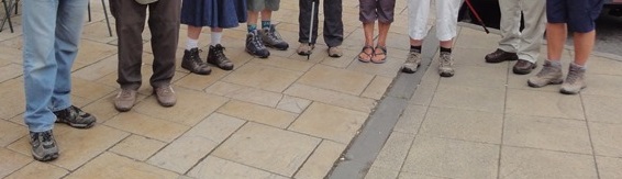 As you can see in the picture above of the feet that set off from Winchester, our team was variously shod. In the warmer days of September, one lightfooted person even wore sandals while others wore trainers or stout leather walking boots. Nobody reported any ill effects from any of these.