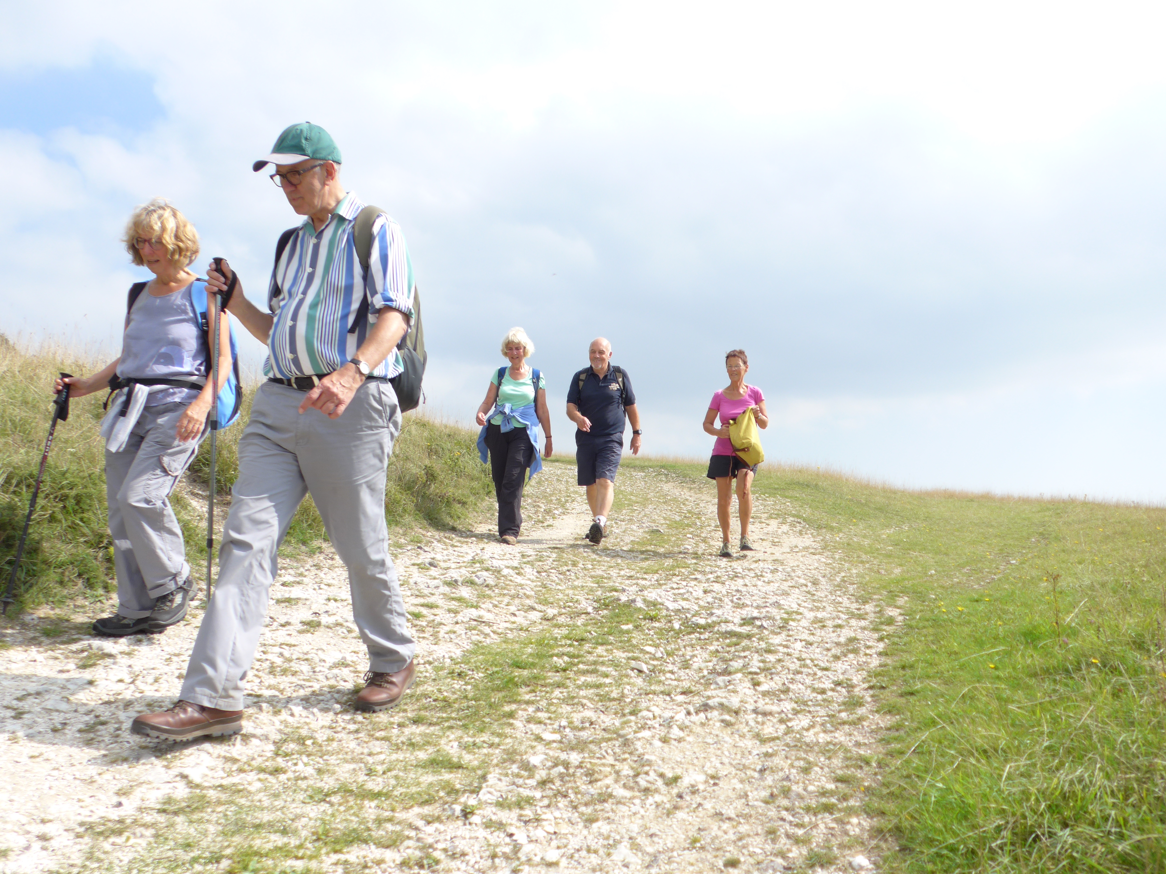 The northern route swings north east from Beachy Head through the lovely village of Jevington (birthplace of Bannofee pie allegedly) and over the lovely grassy stretch of Windover Hill, behind the Long Man of Wilmington, before descending to Alfriston.