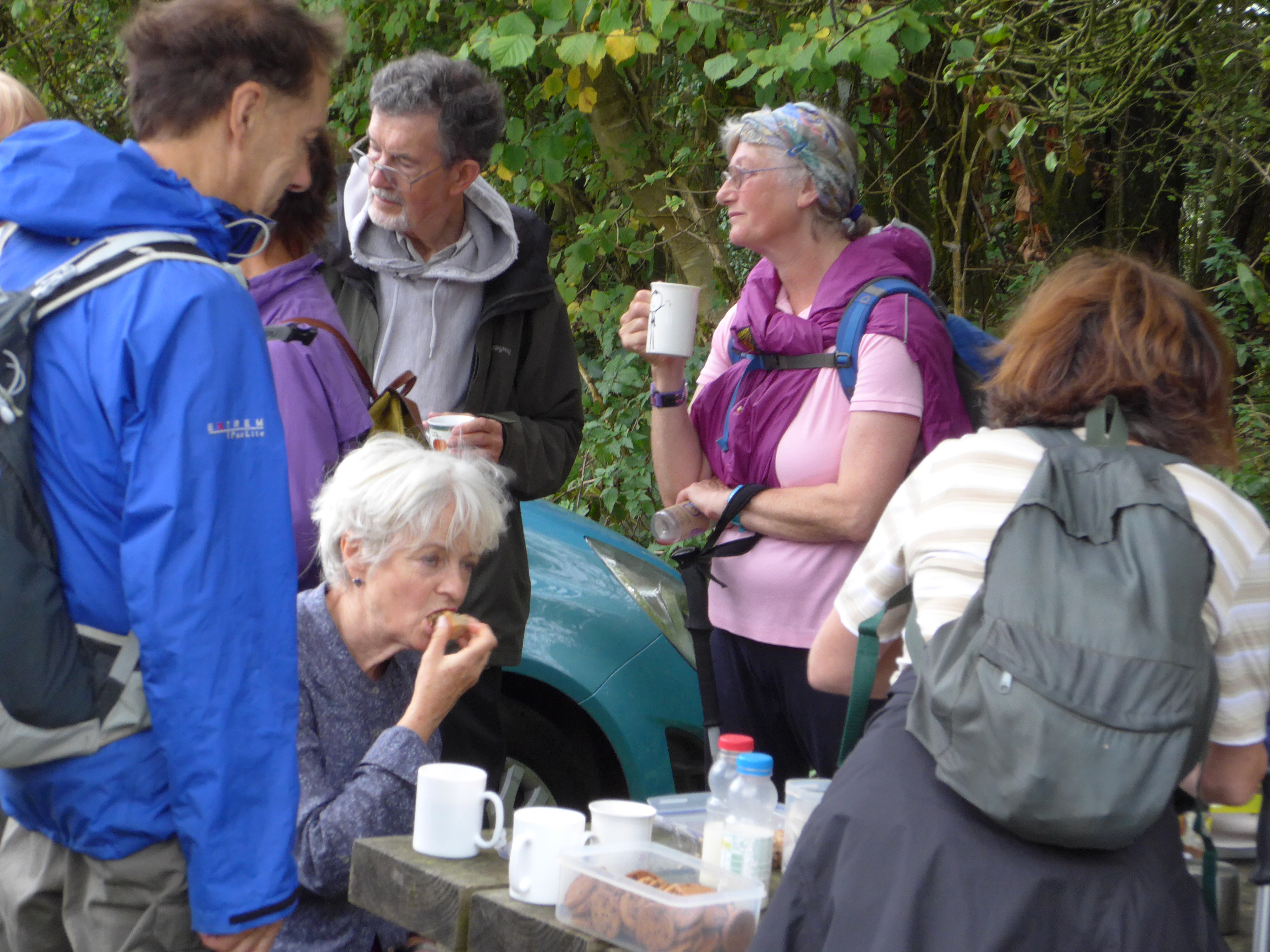 We traveled in four cars to QECP where passengers disembarked into the cafe while the drivers moved their cars to the end of the day’s walk at Exton. Our non-walking driver and guardian angel Liz returned the drivers to Buriton and we were soon climbing the slightly intimidating grassy slope of Butser Hill.
